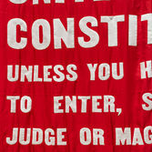 Who Was This Built to Protect? developed over the course of Getting to Know Aram Han Sifuentes, the artist’s long-term, long-distance residency with moCa. It centers around a set of six large-scale red silk curtains with white text that spans the museum’s Gund Commons. These curtains, entitled Messages to Authorities (Go Away!) (2021), are modeled after Red Cards created by the Immigrant Legal Resource Center with language that outlines the rights and protections held by all people under the U.S. Constitution, regardless of immigration status.